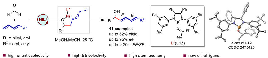 281. Xiang-Rui Liu, Xiao-Yuan Luo, Yu-Qing Wang, Wen-Jing Nan, Mei-Yu Liu, Wei-Guo Xiao, Mengchun Ye, Qi-Lin Zhou, Li-Jun Xiao*. Nickel-Catalyzed Enantioselective Direct Addition of 1,3-Dienes to Aldehydes Enabled by Chiral Monodentate Diamidophosphite Ligands.